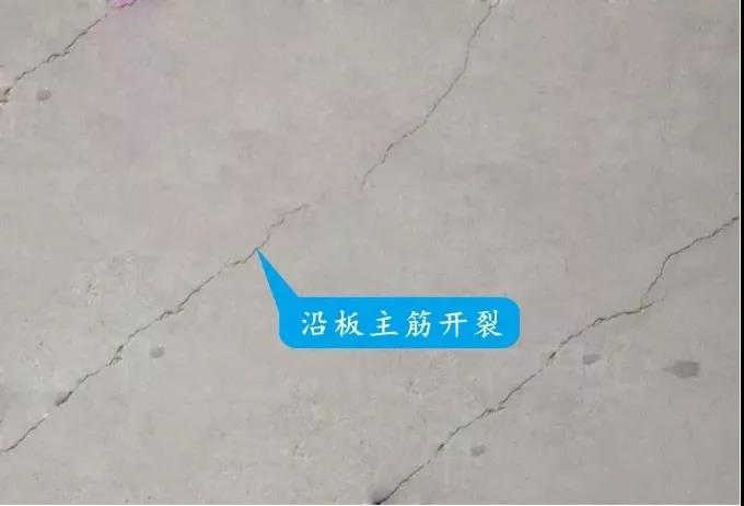 表現(xiàn)形式:現(xiàn)澆樓板沿板筋出現(xiàn)微裂縫。