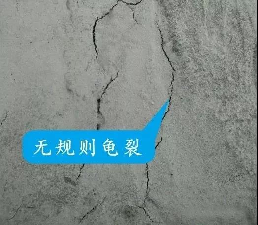 表現(xiàn)形式:現(xiàn)澆樓板表面出現(xiàn)無規(guī)則龜裂。