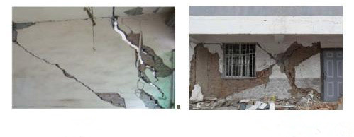 主要是墻體間連接薄弱,在垂直于縱墻的地震作用下,縱墻有向外甩出的趨勢,連接處產(chǎn)生較大的水平拉力,表現(xiàn)為內(nèi)外墻交接面產(chǎn)生豎向裂縫,嚴重的可造成縱橫墻拉脫,甚至縱墻外閃或倒塌。這種破壞在未設(shè)圈梁的房屋中尤為常見。