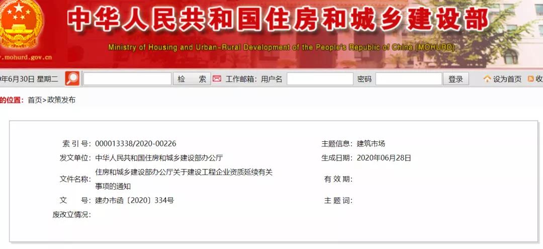 重磅!剛剛!住建部發(fā)文:資質(zhì)證書有效期統(tǒng)一延期至2021年12月31日!