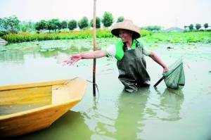 “幸運(yùn)的游客可以在游船時(shí)看到漁民捉魚的情景。”蓮花水鄉(xiāng)的工作人員告訴記者,現(xiàn)在景區(qū)共有10條疍家漁船,撐船者都是當(dāng)?shù)貪O民,閑暇時(shí)他們會在湖中捉魚,頗有江南魚米鄉(xiāng)之感。