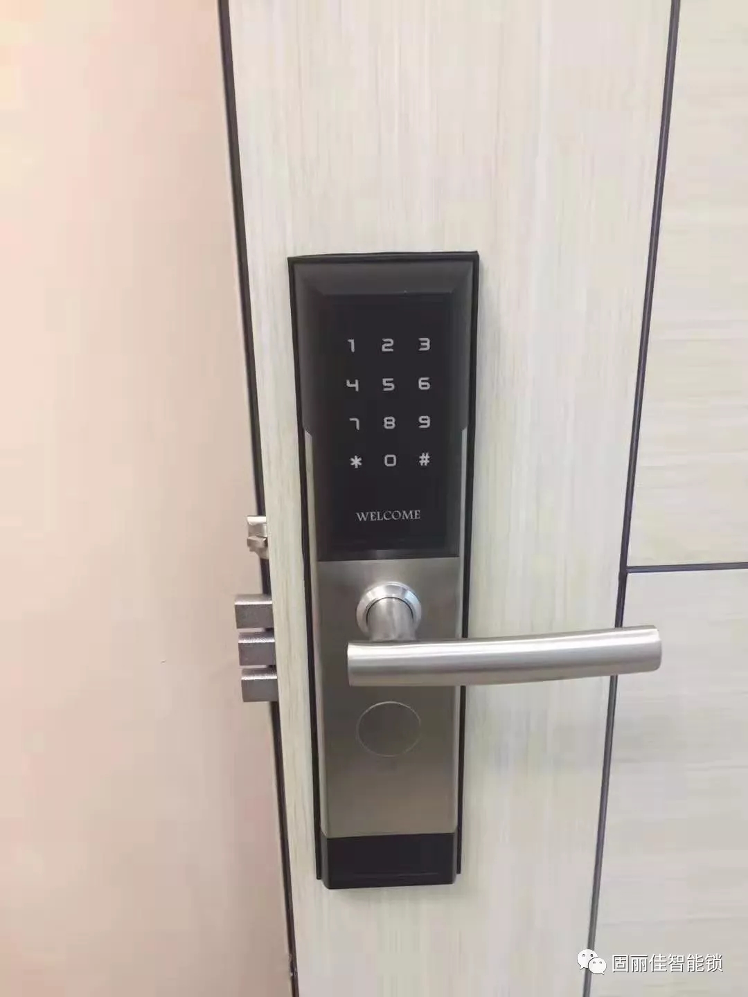 天河梵洛居公寓客房門鎖選擇安裝了固麗佳GLJ-9814不銹鋼LoRa無線聯(lián)網(wǎng)公寓防盜門鎖調(diào)試完成,此款標配6068電子鎖體防盜門不用改孔。固麗佳LORA無線聯(lián)網(wǎng)密碼開鎖信息實時聯(lián)網(wǎng)監(jiān)控、可手機開鎖,密碼開鎖,二維碼開鎖,不需布線可實現(xiàn)遠程開鎖,斷鎖,斷電,防飛房,防欠租,可電腦端手機端同步在線,隨時隨地管理!