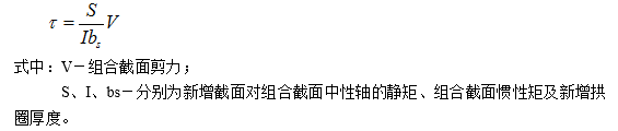 新、老截面間的有效粘結(jié),是保證新澆注混凝土層與原拱圈截面共同受力的保證。當(dāng)不考慮界面相對滑移時(shí),得到剪應(yīng)力簡化計(jì)算公式。