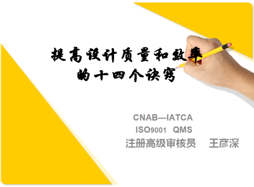 王彥深先生首先通過引用鄧小平的名言“科學(xué)技術(shù)是第一生產(chǎn)力”、“管理也是生產(chǎn)力”,指出當(dāng)前我國與世界發(fā)達(dá)國家(的生產(chǎn)力)相比,主要的瓶頸是管理,同時提出了管理在設(shè)計工作中的重要性,王彥深先生認(rèn)為“當(dāng)你既有一定的技術(shù)水平,又有一定的管理能力,你就具有:快速奔跑的兩條長腿和不斷騰飛的兩個翅膀?!倍笏鶕?jù)自己工作多年來學(xué)習(xí)到的很多管理經(jīng)驗(yàn)、獲得的感悟和體驗(yàn),向工程師們分享了提高設(shè)計質(zhì)量和效率的十四個訣竅,其中一些訣竅同樣適用于結(jié)構(gòu)檢測鑒定工作中。