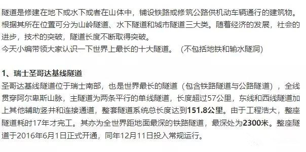 世界上最長的10條隧道,中國就有4條!