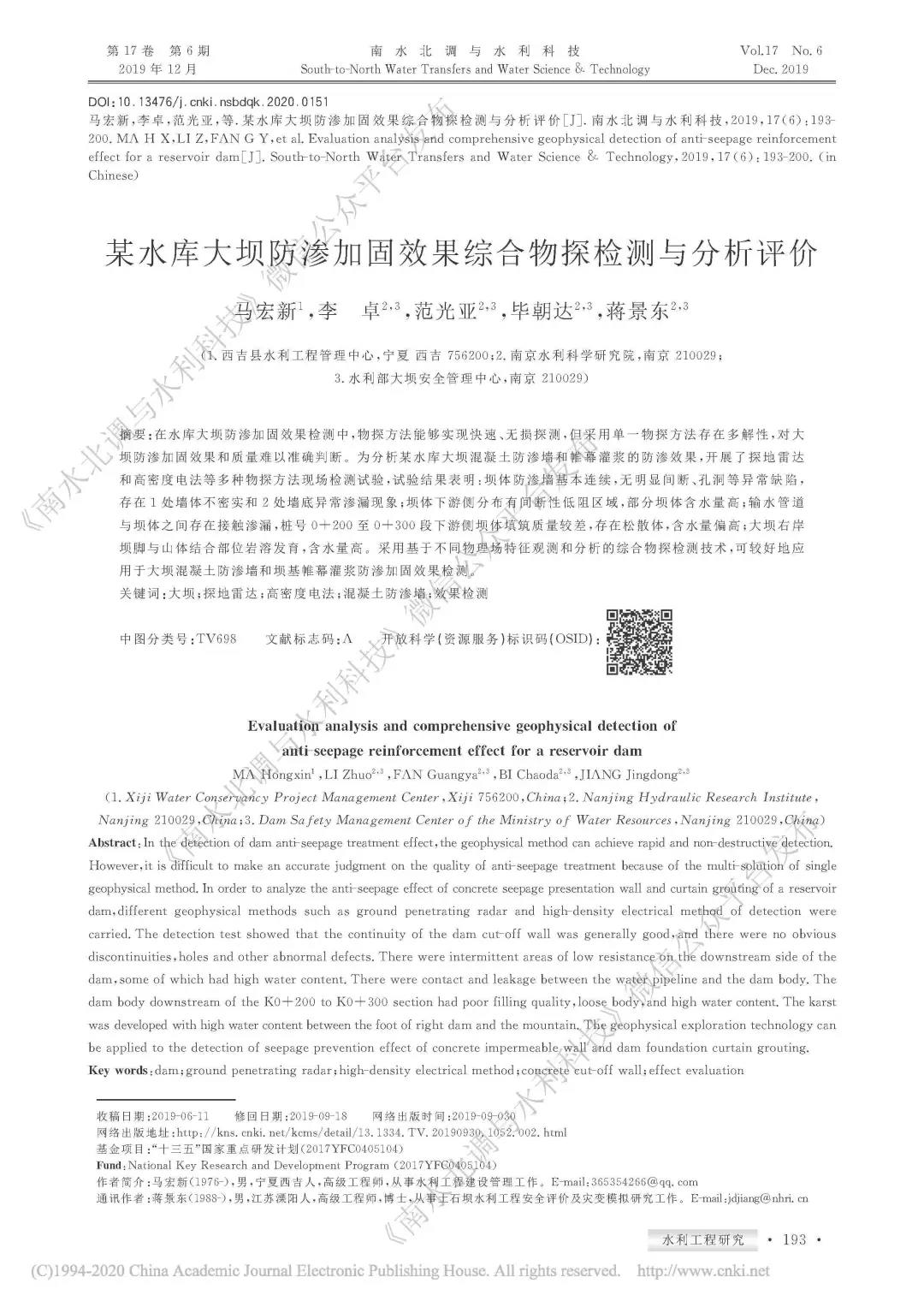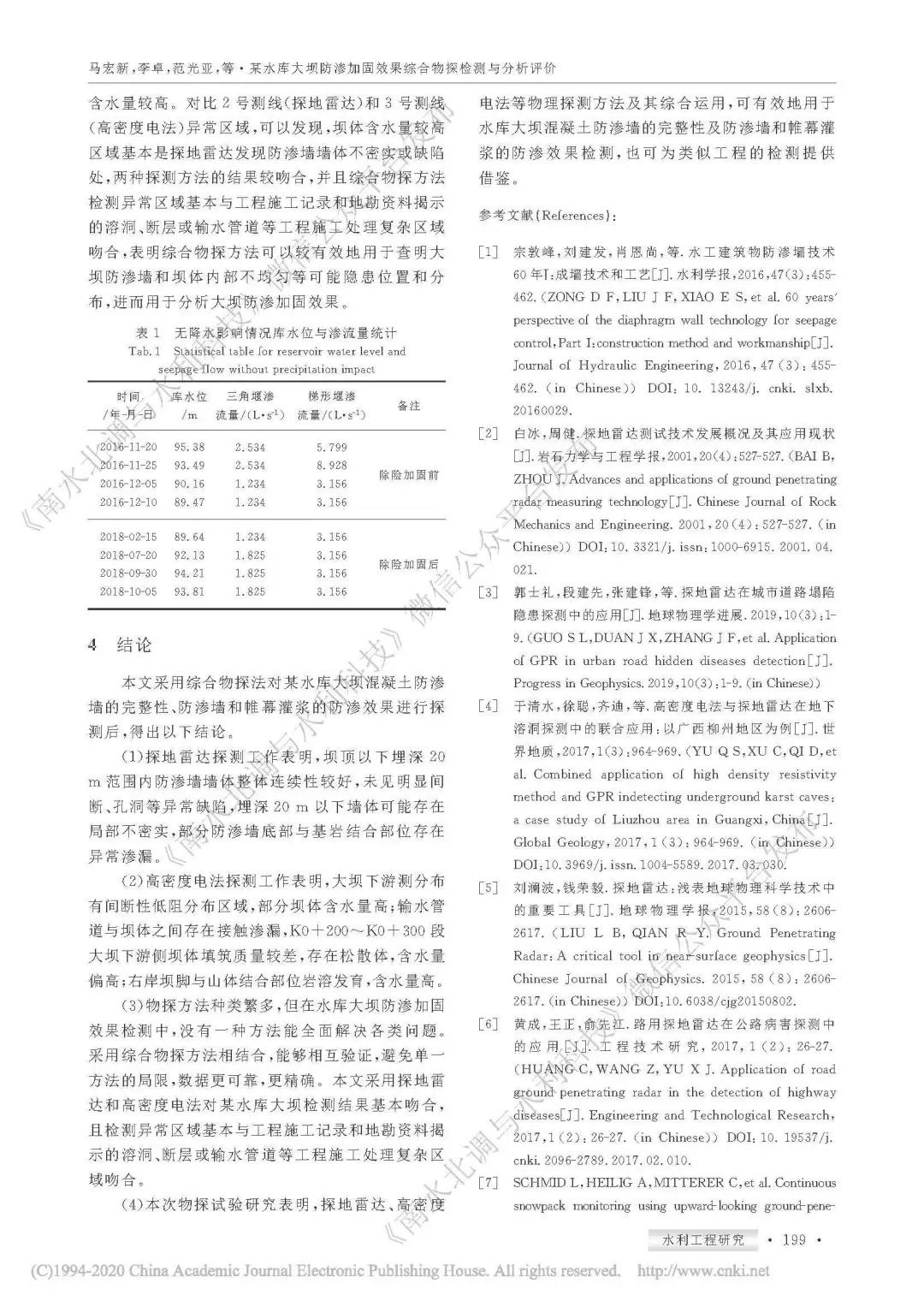 馬宏新,李卓,范光亞,等.某水庫大壩防滲加固效果綜合物探檢測與分析評價[J].南水北調(diào)與水利科技,2019,17(6):193-200.