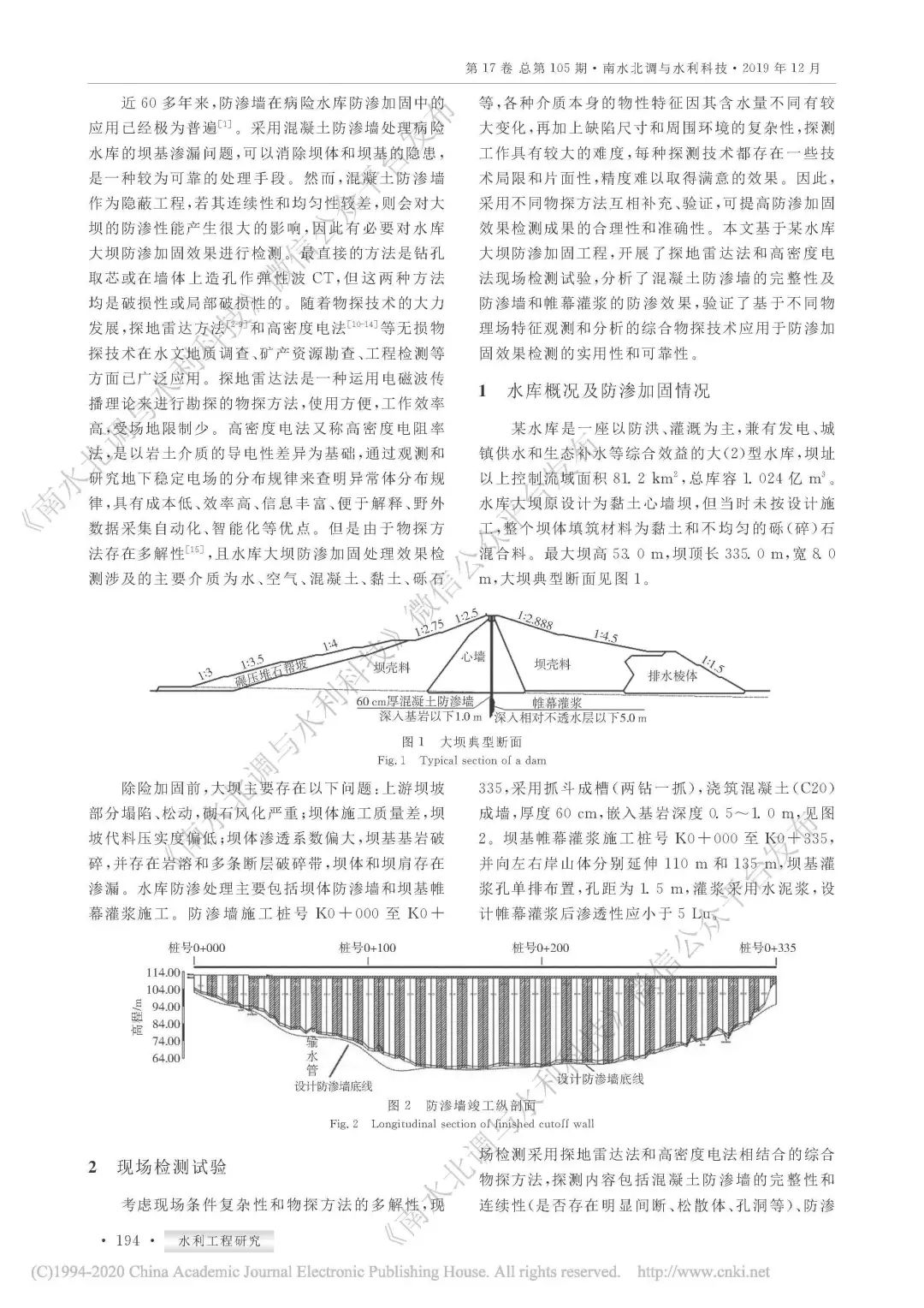 大壩;探地雷達;高密度電法;混凝土防滲墻;效果檢測