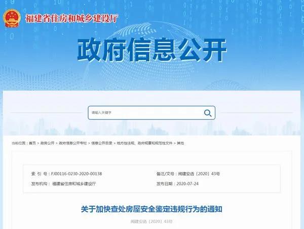 發(fā)布日期:2020-07-28 14:58:11 瀏覽量:810近日,福建省房屋安全隱患排查整治專項行動領(lǐng)導(dǎo)小組辦公室印發(fā)《關(guān)于加快查處房屋安全鑒定違規(guī)行為的通知》,要求各房屋結(jié)構(gòu)安全隱患大排查大整治百日攻堅專項行動牽頭單位加快查處房屋安全鑒定違規(guī)行為。
