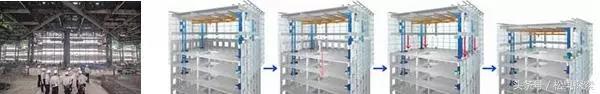 比如,在拆這棟90米高的大樓的時(shí)候,鹿島建設(shè)株式會(huì)社的工人同時(shí)把支撐大樓底部的40根柱子削短0.7米,并用液壓千斤頂撐住大樓。
